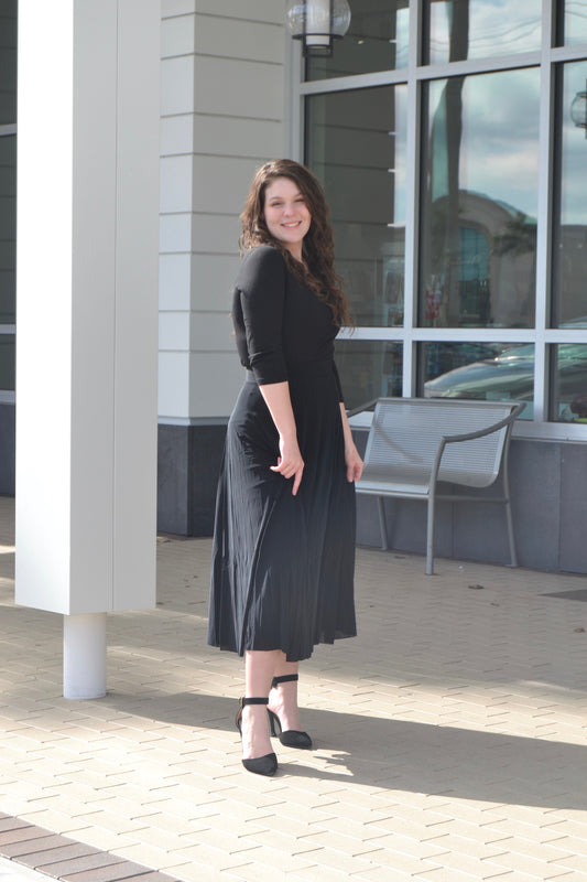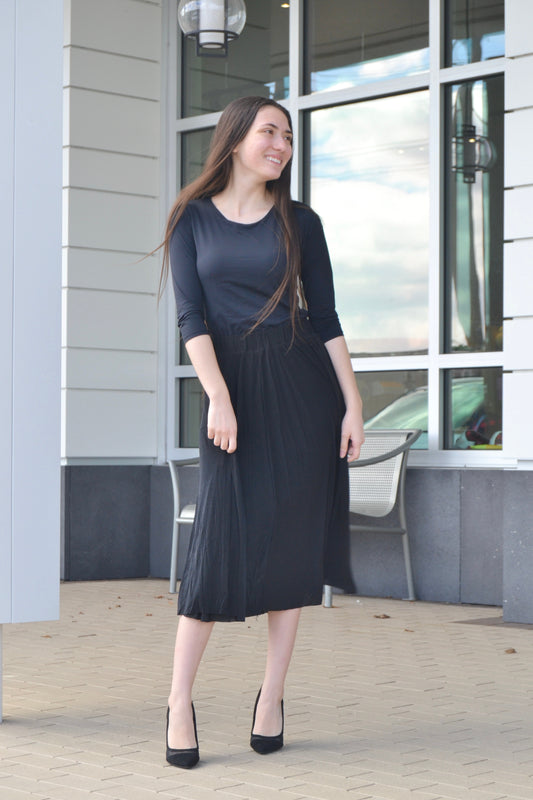 Midi Soft Black Pleated Skirt